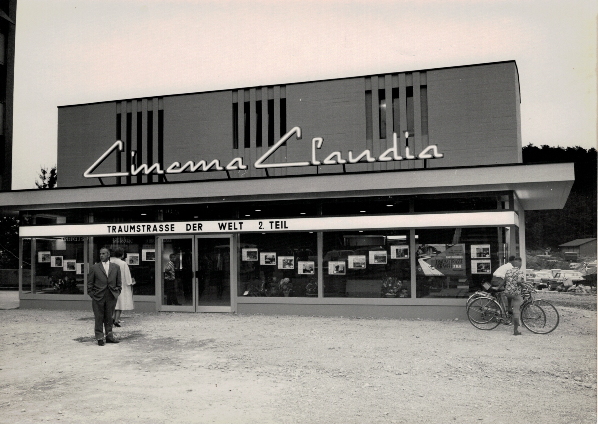 Am Donnerstag, 27. Juni 1963 öffnete das Cinema Claudia zum ersten Mal seine Tore. Gezeigt wurde der Dokumentarfilm «Traumstrasse der Welt, 2. Teil», ein Reisebericht über den südamerikanischen Teil der Panamericana, der Strasse von Alaska nach Feuerland. Bauherren und Betreiber waren Josef und Rosa Frei-Ruf, die seit 1949 bereits erfolgreich das Kino Rex an der Schaffhauserstrasse 125 führten. Entworfen vom Architekten Ewald Viquerat zeigte sich das Cinema Claudia in den klaren, kantigen Formen des Brutalismus, der in den 60er- und 70er-Jahren weite Verbreitung fand. Es war das erste Kino, das über eine vollautomatische Projektions- und Tonanlage verfügte und sollte das letzte komplett neu erbaute Landkino im Kanton Zürich bleiben.